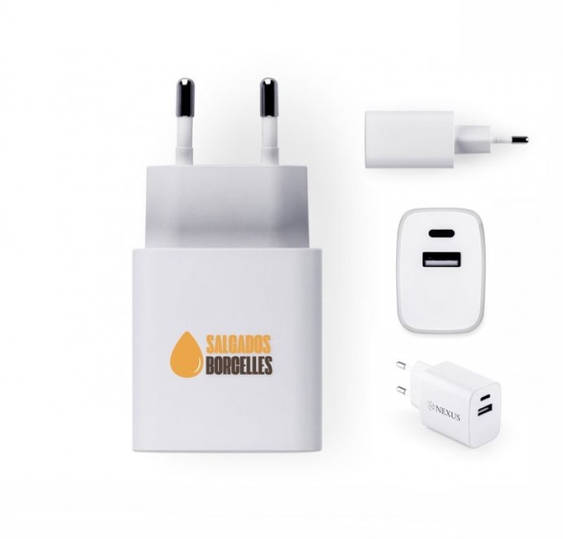 Ideal para campanhas publicitárias, feiras, eventos, brindes corporativos. O adaptador de corrente com entradas USB-C e USB-A é produzido em ABS 100% reciclado, unindo sustentabilidade e alta performance. Com potência de carregamento rápido – USB-C PD20 (20W) e USB-A QC 3.0 (18W) – é ideal para uso em casa, no escritório ou em viagens.