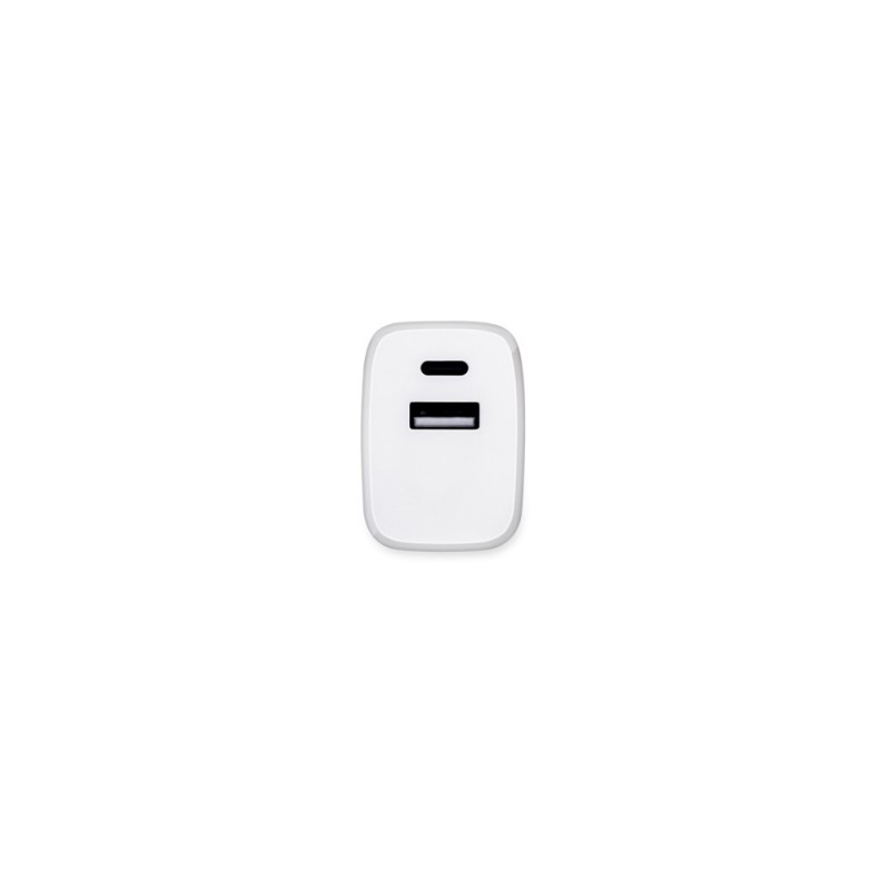 Adaptador de corrente USB-C e USB-A em ABS 100% reciclado. Com USB-C PD20 (20W) e USB-A QC 3.0 (18W) este adaptador permite carregamentos super-rápidos, sendo eficazes em casa, no escritório ou em viagem. Compatível com qualquer dispositivo (o cabo de carregamento é vendido à parte). Fornecido em caixa presente de papel Kraft reciclado. 81 x 40 x 30 mm | Caixa: 45 x 89 x 32 mm