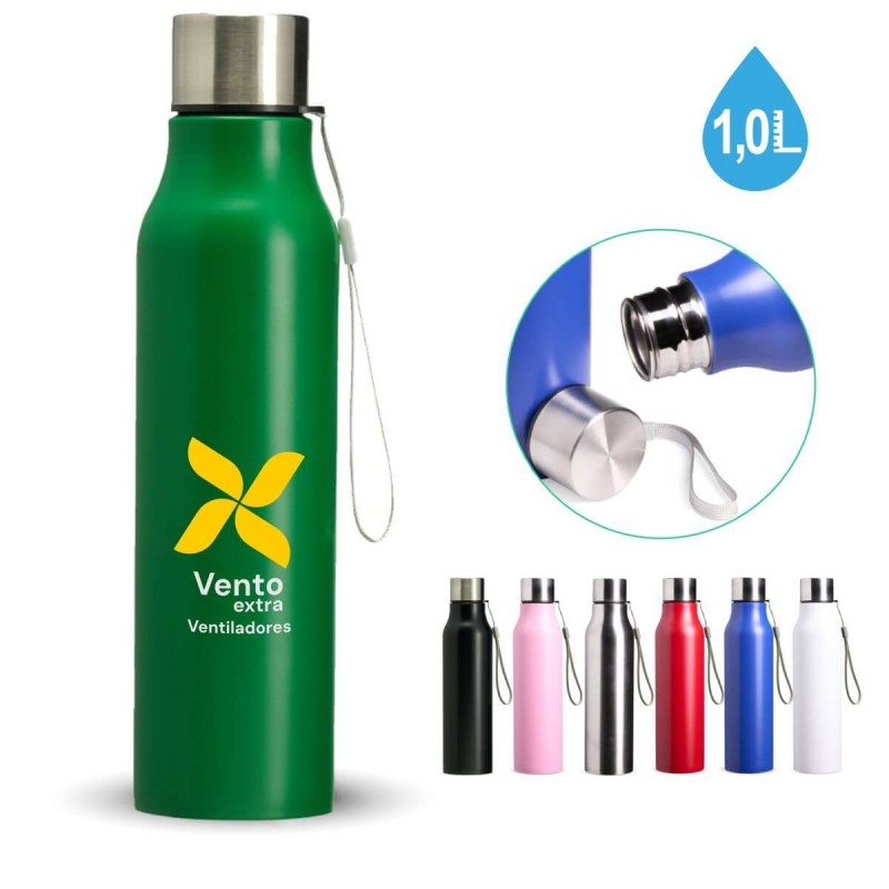 Garrafa de inox com capacidade de 1 litro, resistente e durável, com tampa de alumínio e silicone de vedação que evita vazamentos, e alça de nylon confortável para transporte. Ideal para uso no dia a dia, mantendo água, sucos ou bebidas sempre à mão em casa, trabalho, academia, passeios ou viagens. Também é uma excelente opção de brinde ou presente personalizado, perfeita para eventos corporativos, campanhas promocionais, academias, escritórios, clubes esportivos e feiras, unindo praticidade, estilo e visibilidade da marca.