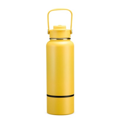Garrafa térmica 800ml produzida em inox com pintura eletrostática e acabamento de alta durabilidade. Possui estrutura interna com parede dupla e vedação a vácuo, que conserva a temperatura das bebidas por muito mais tempo. A tampa plástica rosqueável conta com protetor para o bocal, bico flip, canudo interno removível e alça fixa para facilitar o transporte. O fundo removível torna a limpeza simples e prática, ideal para o dia a dia no trabalho, academia, viagens ou passeios ao ar livre. É também uma excelente opção de brinde personalizado para empresas que desejam oferecer um produto funcional e moderno a clientes e colaboradores.