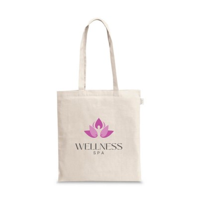 Sacola em 100% algodão reciclado (140 g/m²) com alças de 65 cm.