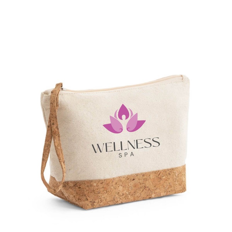 Bolsa de cosméticos 100% algodão (280 g/m²) com detalhes em cortiça no fundo da bolsa, e puxador que também tem a função de pega para facilitar o transporte. O interior é forrado, sendo de fácil limpeza e rápida secagem, ideal para guardar maquiagem.