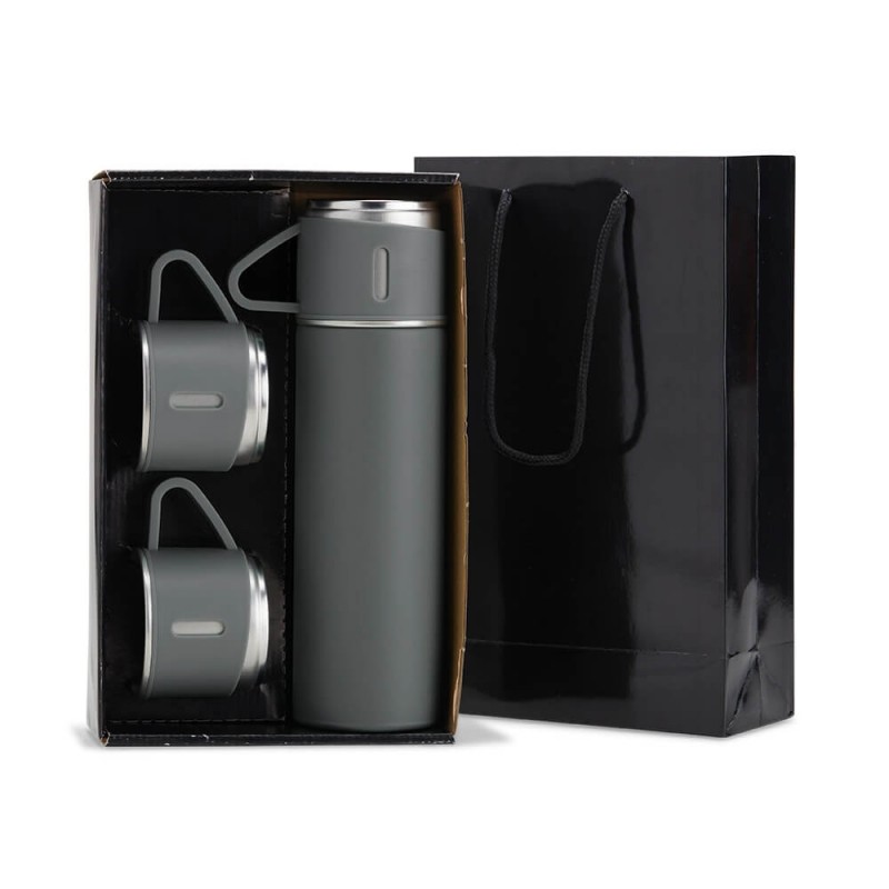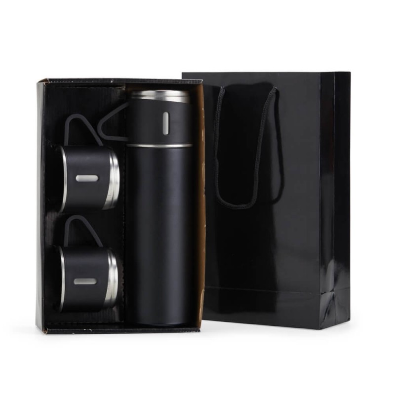 O Kit Garrafa Térmica 450ml é uma solução elegante e funcional para presentear clientes e colaboradores. Produzida em inox, a garrafa conta com base antiderrapante que garante maior segurança no uso. O destaque do kit são as duas tampas extras, que podem ser utilizadas como xícaras, oferecendo praticidade em qualquer situação. Acompanha sacola de papel com berço interno em papelão para acomodar as peças com cuidado e sofisticação, tornando o presente ainda mais especial. Ideal para ações promocionais, brindes corporativos e eventos de empresas que desejam unir utilidade e estilo.