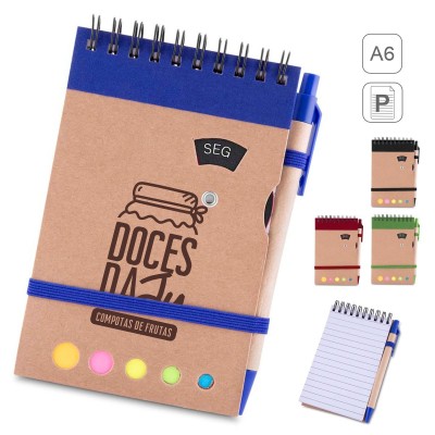 Perfeito para brindes promocionais criativos e funcionais, o mini caderno com sticky notes, caneta e disco rotativo com os dias da semana é uma escolha inteligente para ações corporativas que buscam utilidade e impacto visual. Ideal para feiras, treinamentos, kits de integração e campanhas sustentáveis, esse produto oferece uma experiência prática e completa para o dia a dia. A capa é feita em papel kraft, conferindo um visual rústico e moderno, enquanto seu interior traz 70 folhas pautadas de papel branco para anotações organizadas. Um diferencial atrativo são os blocos adesivos coloridos (sticky notes), perfeitos para recados rápidos e marcações importantes.
