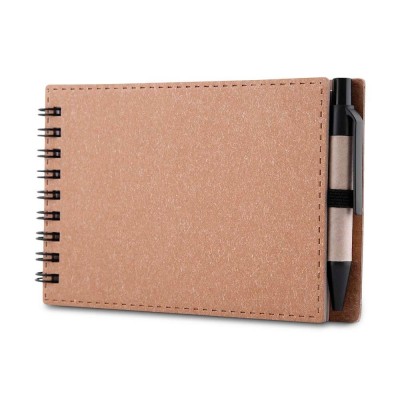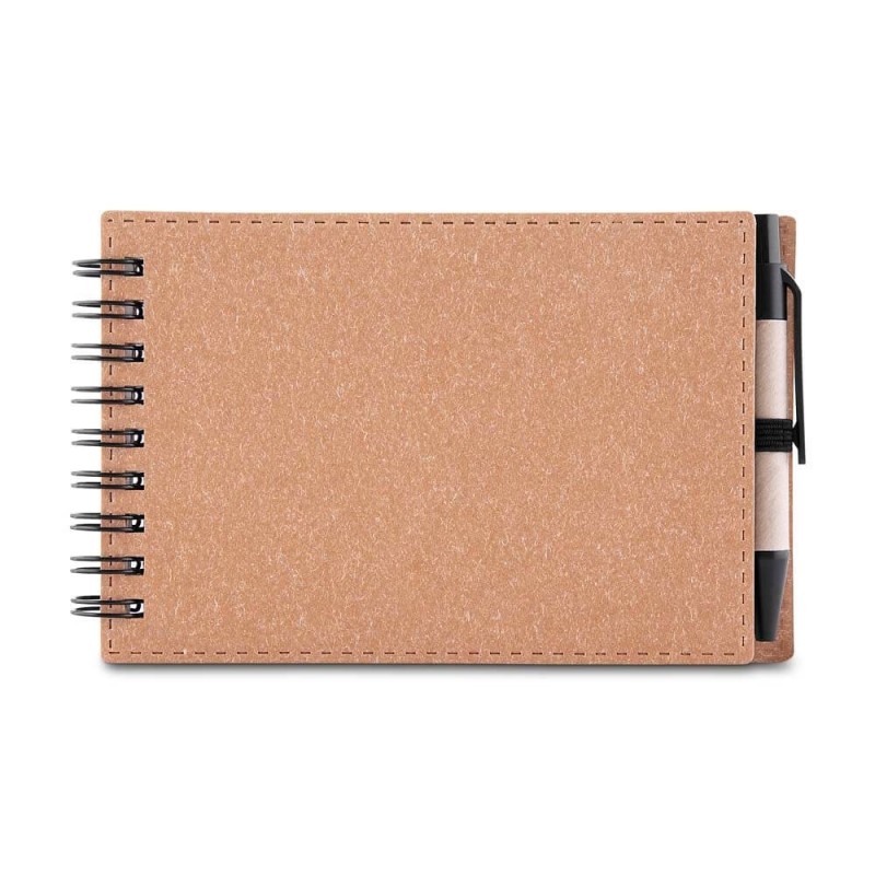 Funcional, ecológico e com excelente custo-benefício, o mini caderno com caneta em papelão reciclado é o brinde corporativo ideal para ações promocionais sustentáveis, feiras, eventos internos e kits personalizados. Com um visual moderno e compromisso ambiental, esse conjunto transmite valores como responsabilidade, organização e atenção aos detalhes. O caderno possui capa resistente em papelão e encadernação em espiral wire-o, garantindo durabilidade e facilidade para manuseio. Suas folhas internas são sem pauta, em papel branco 70g/m², perfeitas para anotações rápidas, desenhos ou recados no dia a dia de trabalho ou estudo.