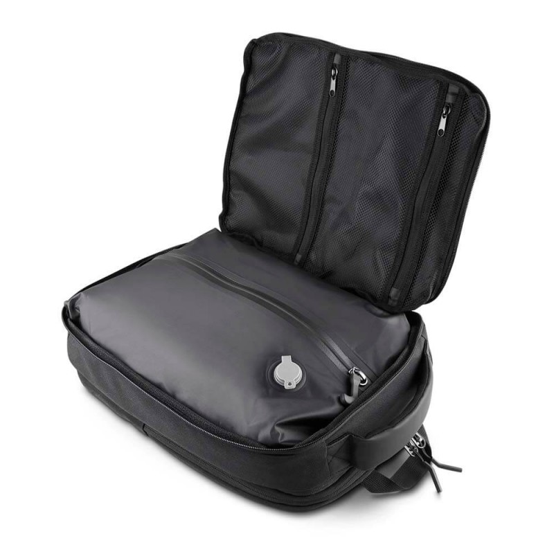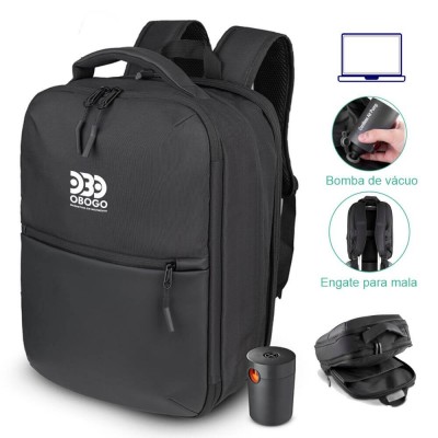 A Mochila Premium com Vácuo é confeccionada em poliéster 600D com detalhes em PU, sendo a escolha ideal para profissionais em constante movimento. Seu grande diferencial é o exclusivo compartimento interno a vácuo com bomba de sucção inclusa, além de um zíper expansor que altera sua capacidade para até 26 Litros. Com compartimento acolchoado para notebook de até 15,6", bolso antifurto nas costas e engate para malas de viagem, ela substitui facilmente uma mala de bordo extra. Este modelo tecnológico é perfeito para uso corporativo em viagens de curta duração e uma excelente opção de brinde personalizado premium para executivos . Sua funcionalidade inovadora faz dela o presente ideal para ações de marketing, eventos corporativos e campanhas de incentivo em multinacionais.
