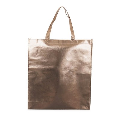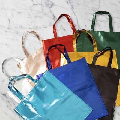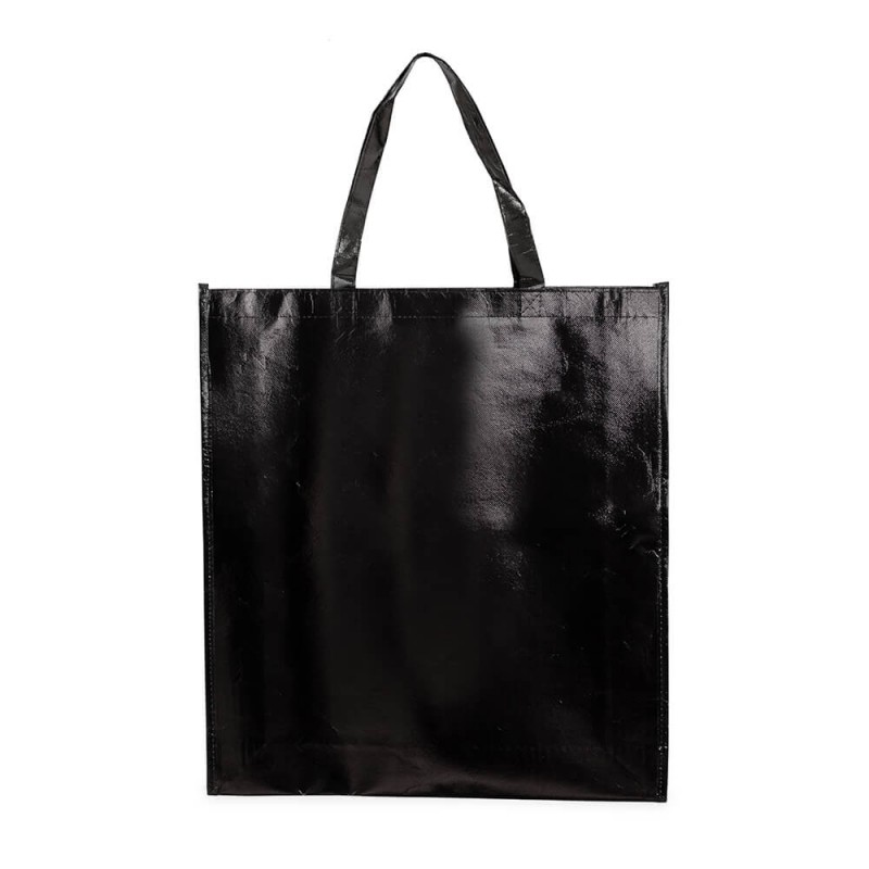 Esta sacola é fabricada em TNT (Tecido Não Tecido) de alta densidade, recebendo um revestimento externo laminado que confere brilho e impermeabilidade ao material. O modelo é estruturado com duas alças reforçadas e costuradas, o que garante maior segurança no transporte e evita que o corpo da sacola rasgue sob tensão lateral.